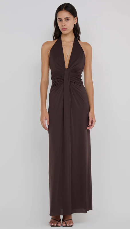 Make a statement in this maxi dress, featuring a flattering halter neckline with an effortless draped silhouette.