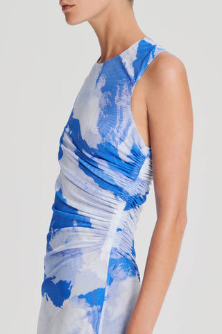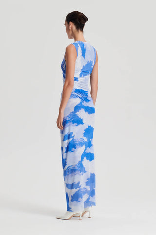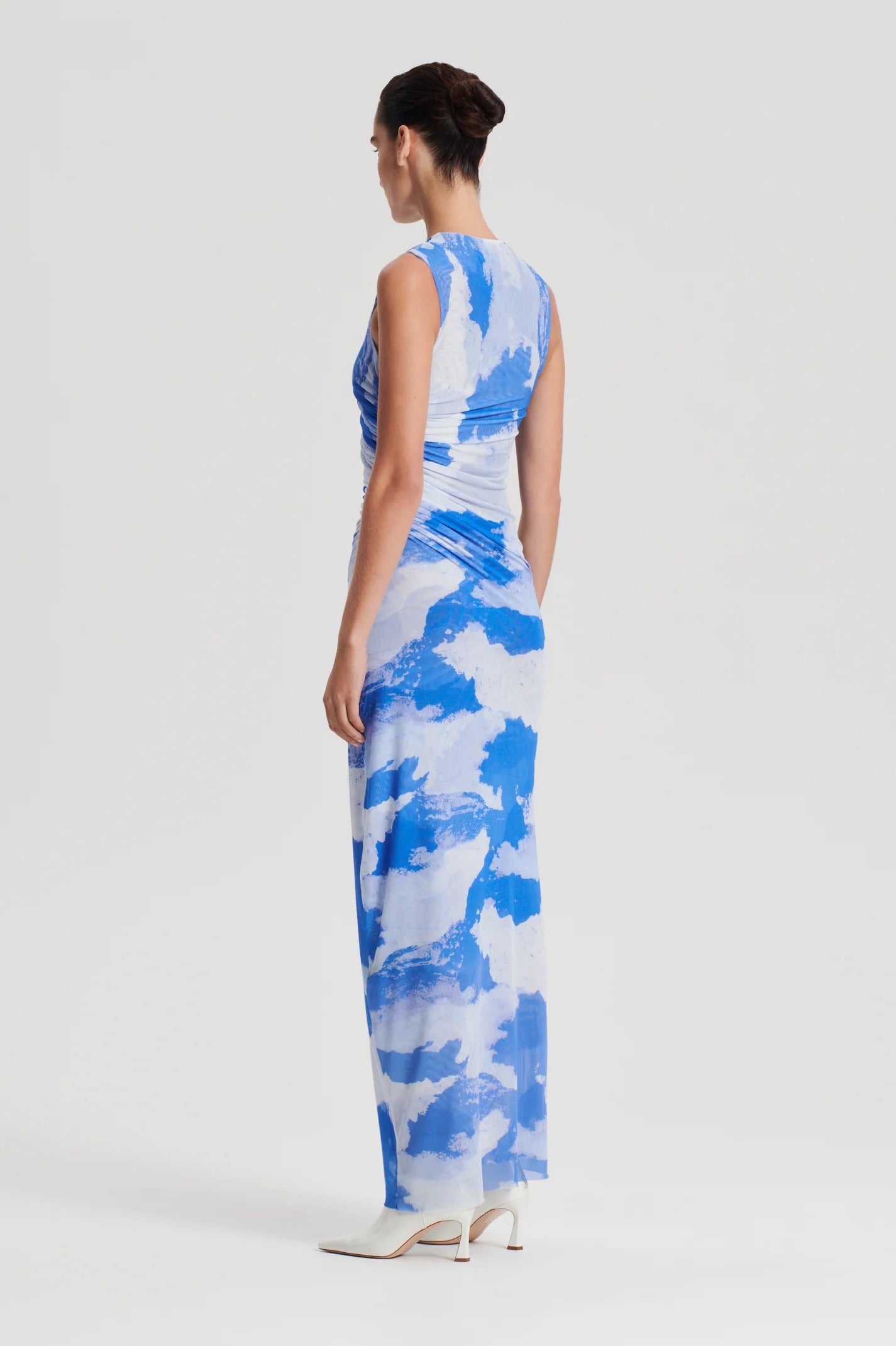 The Cloud Print Dress invites modern elegance to occasion silhouettes. Exclusively designed as a hand-painted interpretation of cloud illustrations, the abstract motif is carefully printed in Scanlan Theodore's Italian atelier on a high-quality mesh fabrication. Crafted to a minimalist silhouette, the dress is defined by the asymmetrical, gathered detailing down the side of the bodice. Pair with minimalist accessories and tailored outwear for upcoming events.