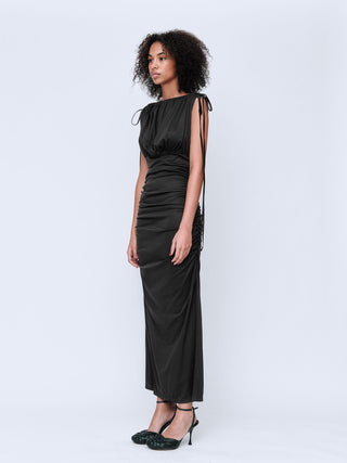 Crush One Shoulder Cape and Tailored Trouser - Black