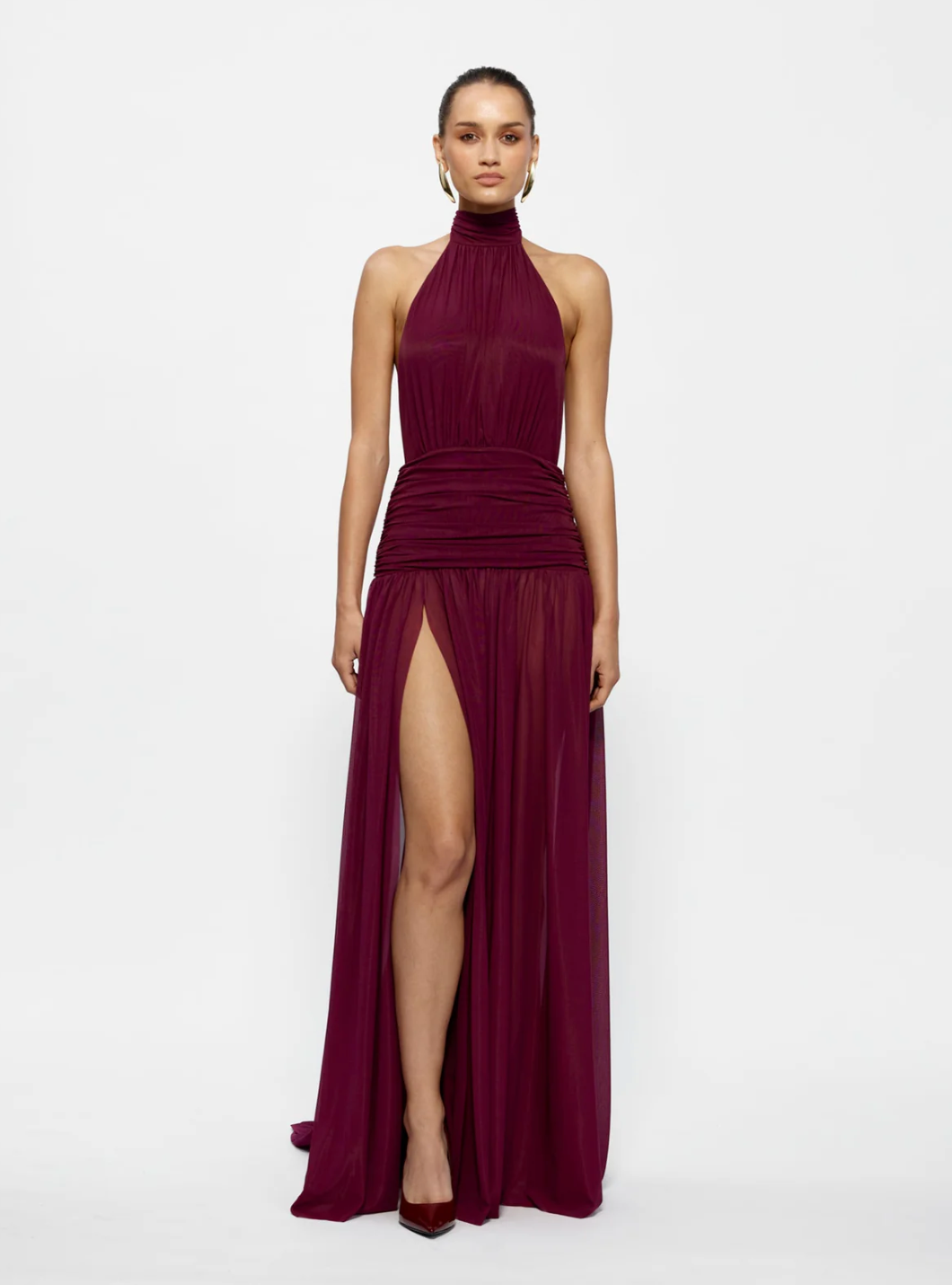 Introducing the Verity Gown, a romantic blend of sensual allure and vintage charm. Crafted from our soft and buttery mesh that beautifully flows and drapes across the body. The Verity Gown focuses on flattering the feminine form, featuring a halter style neckline that blends seamlessly into a full length maxi skirt.
