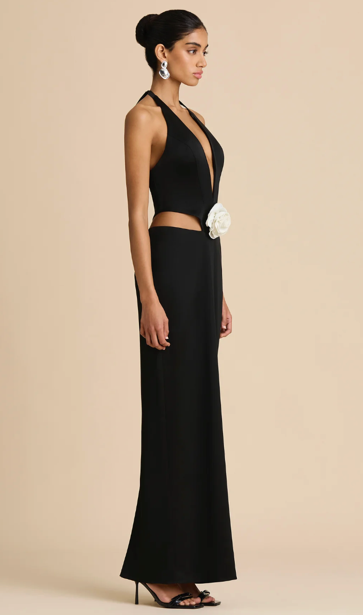 The Candise is a captivating maxi dress, crafted from a richly textured fabric that adds depth and dimension. The design features a halter neckline with a central knot detail at the bust, creating a flattering gathered effect and an eye-catching keyhole cutout below. The bodice transitions seamlessly into a flowing A-line skirt that drapes elegantly to the floor, balancing boldness with softness. With its open back and sculptural silhouette, this dress merges contemporary allure with effortless sophistication — ideal for sunset soirées, resort evenings, or statement-making events.