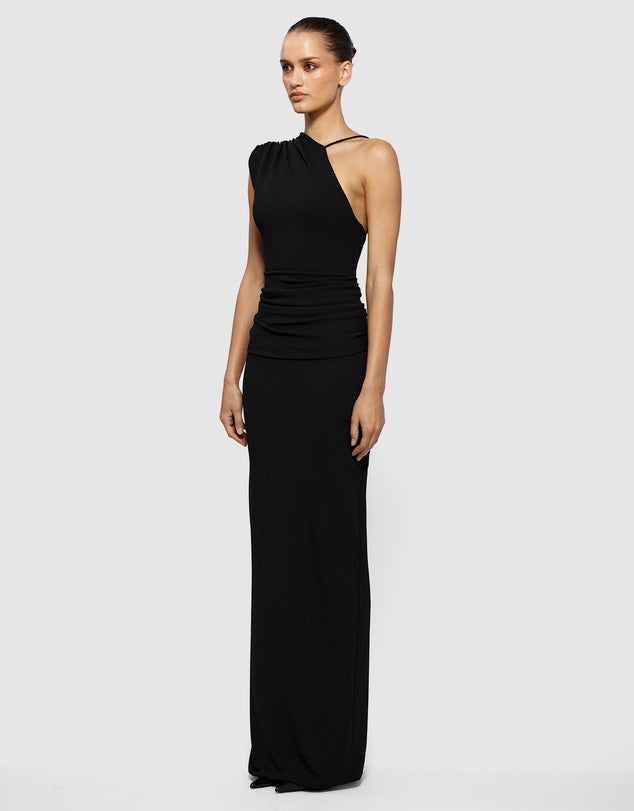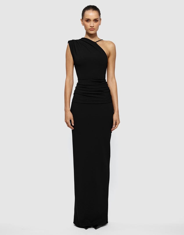 The Greer Gown is a striking floor-length dress tailored for the contemporary woman. Made from our exclusive stretch crepe fabric, it showcases an asymmetrical one-shoulder silhouette paired with an open back. Elegant ruching accentuates the figure, creating a beautifully sculpted fit. Perfectly suited for any occasion, the Greer Gown transitions effortlessly from subtle evenings to memorable celebrations.