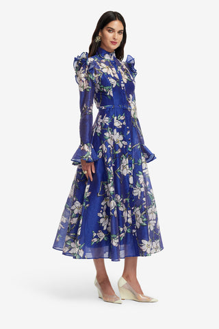 Katrina Butterfly Sleeve Midi Dress - Midnight Magnolia Print