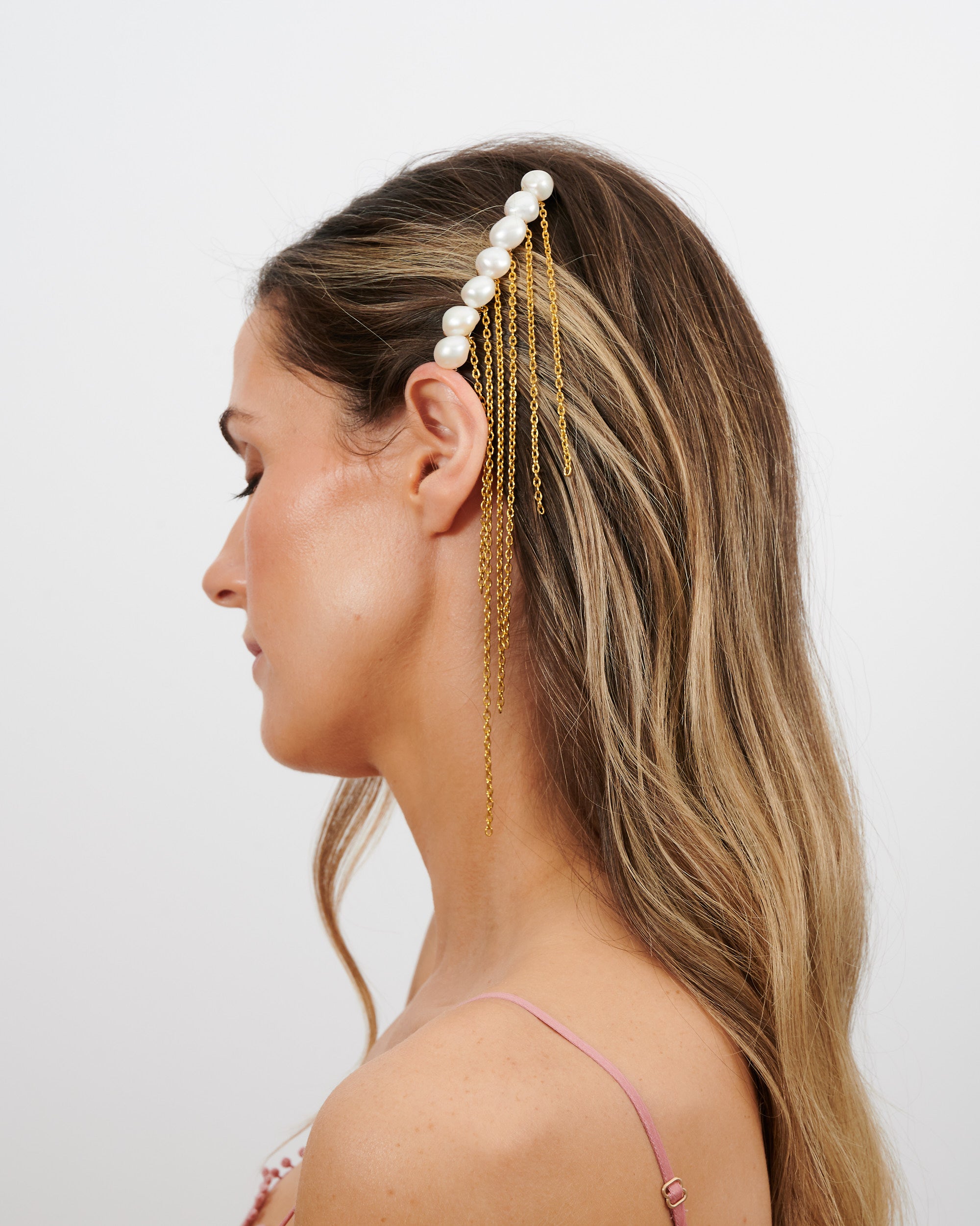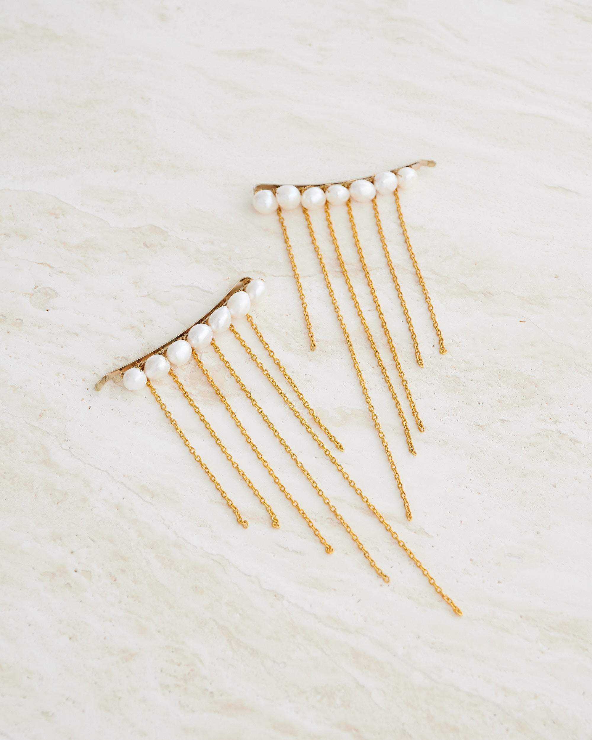 Stunning Genuine freshwater pearl clips with feature gold metal chains.