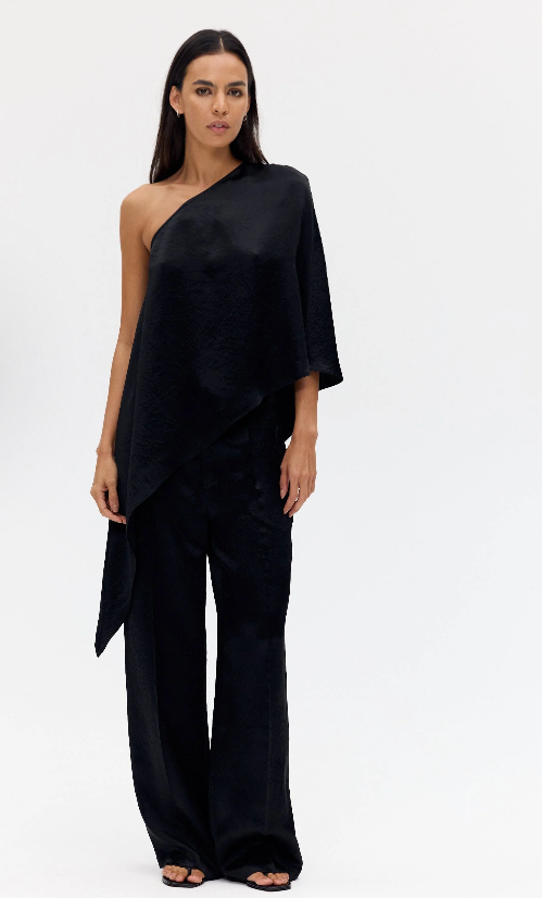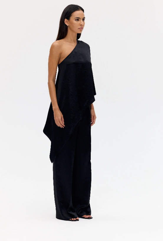 Crush One Shoulder Cape and Tailored Trouser - Black