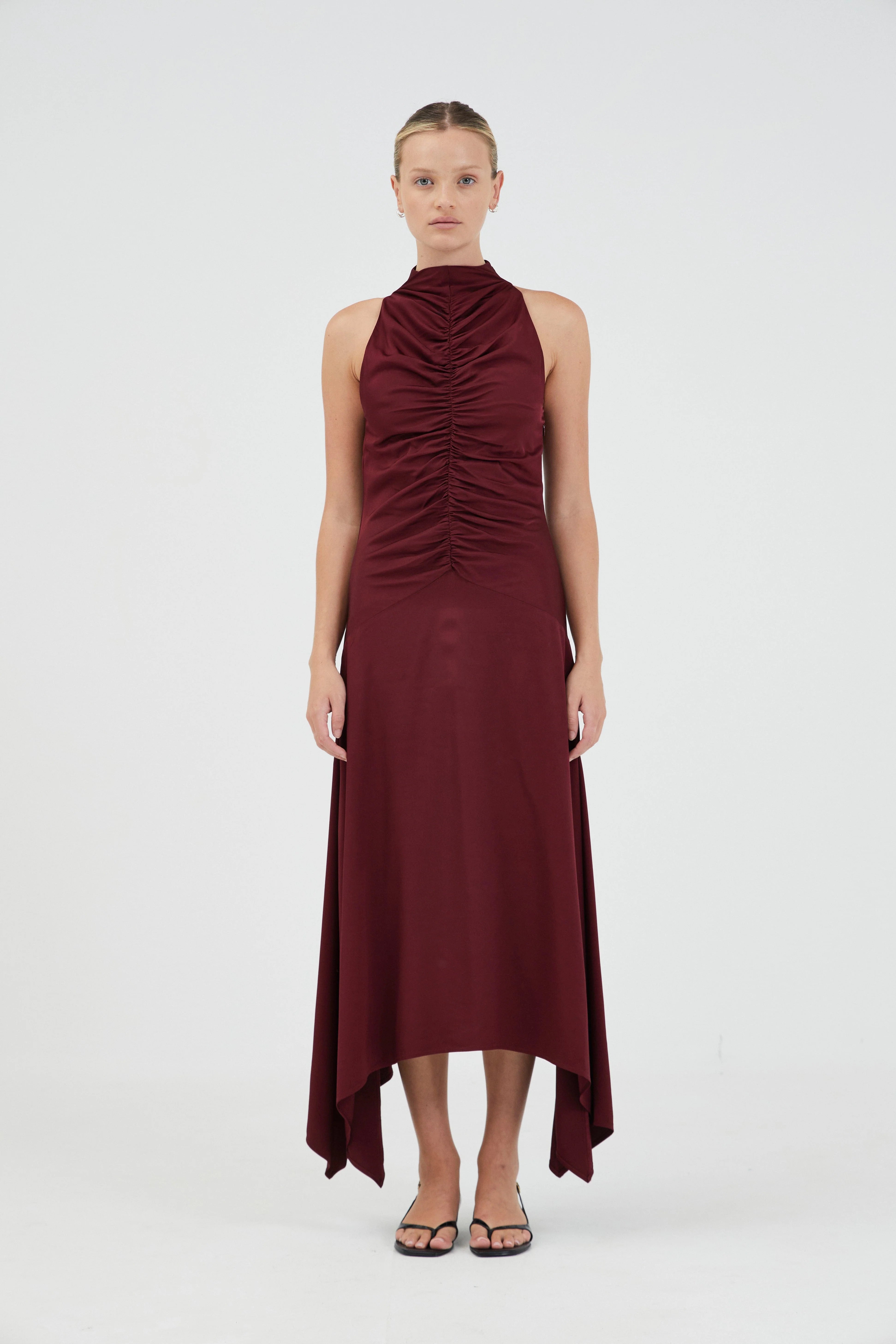 Contemporary elegance meets refined detail in the Allure Gathered Tank Dress. Designed for a close fit through the bodice, this sleeveless midi silhouette features fixed gathers through the centre front and back seams, contouring the figure with soft texture. The voluminous handkerchief hemline brings fluid movement and dimension to the look.