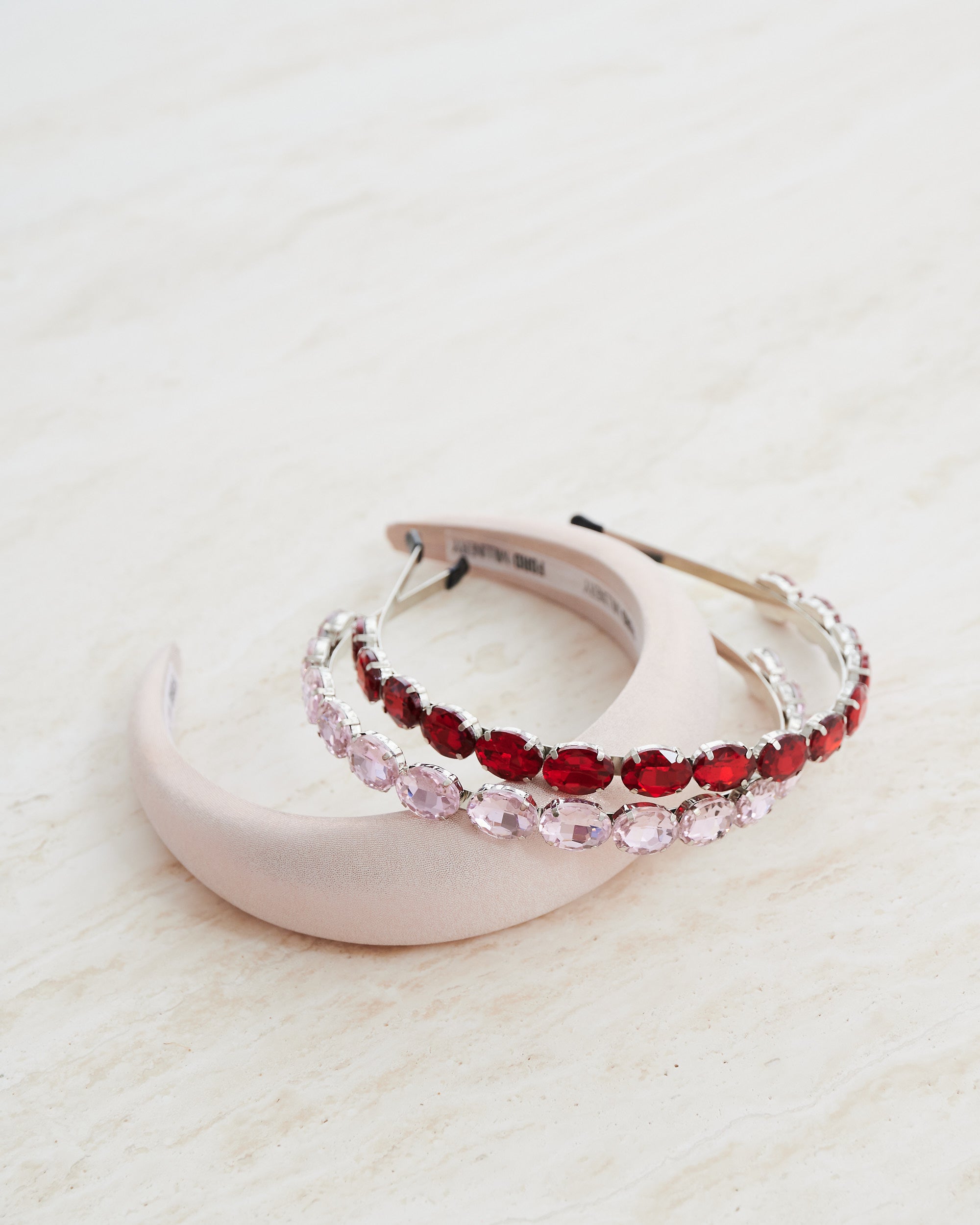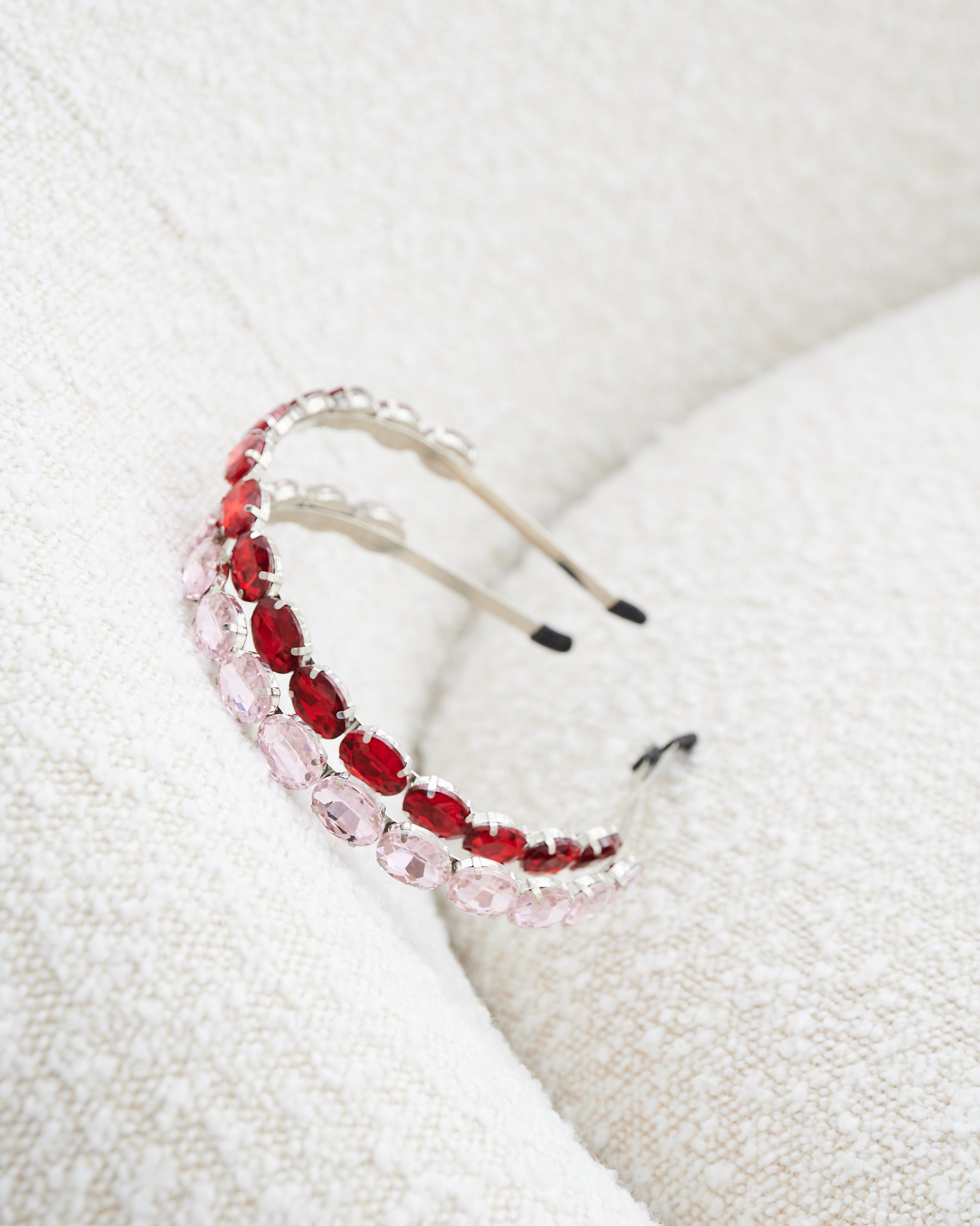 A modern and contemporary headband. It is composed of glass crystals on a slim headband. Pair together to get glimmer in your hair this race day.